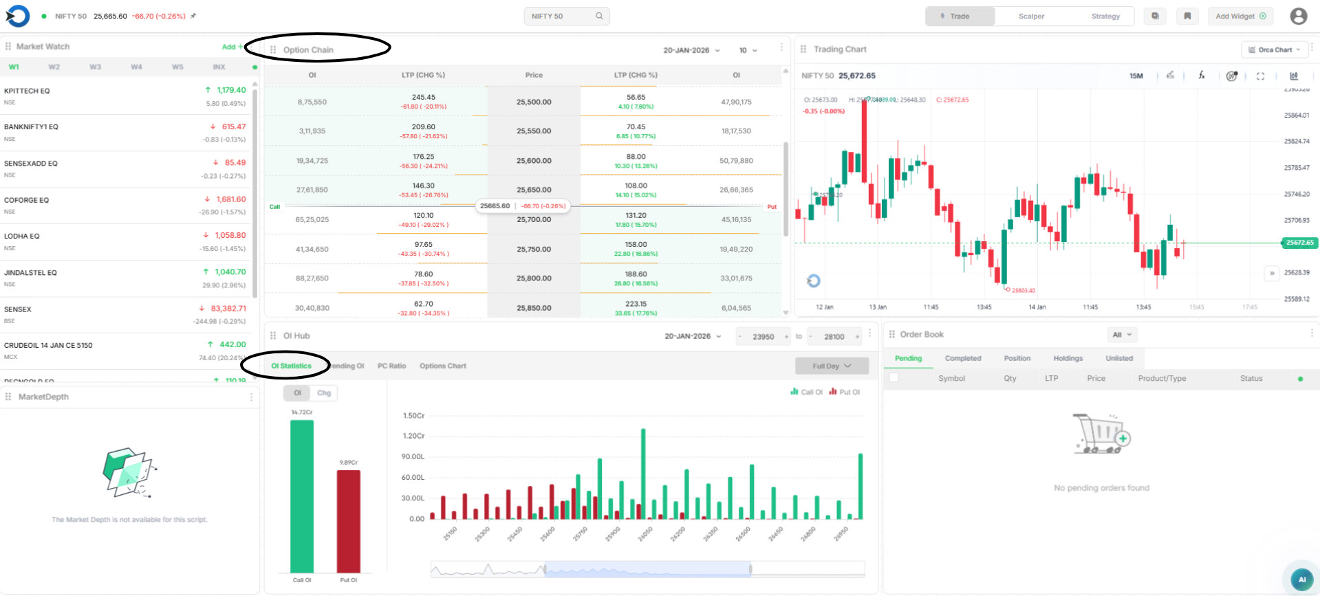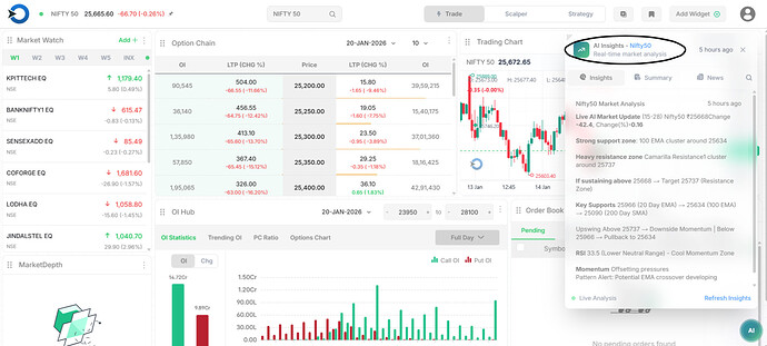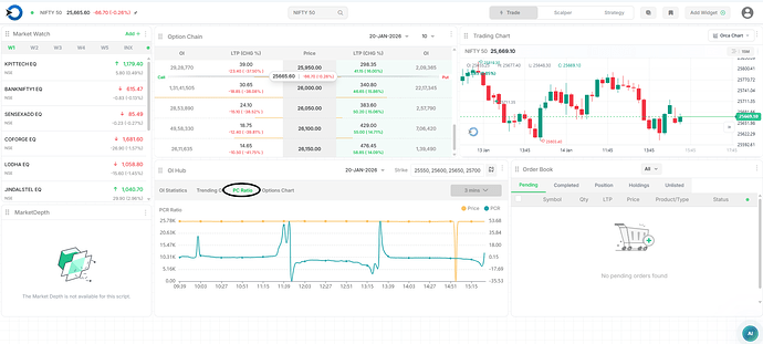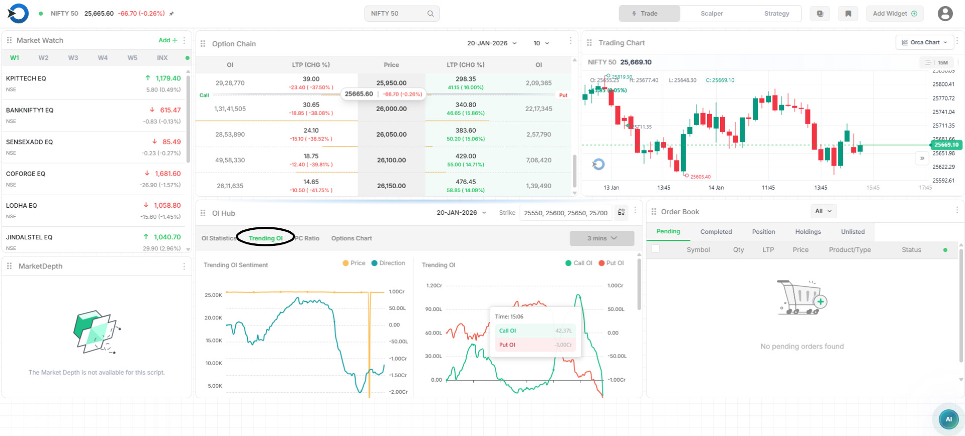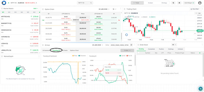 Trending OI shows where traders are adding or exiting option positions in real time with selected strikes